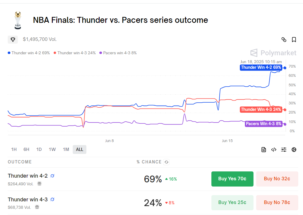 不过步行者的确是命悬一线了,根据Polymark的预测,雷霆夺冠概率已经高达93%,步行至逆袭概率只有7%。