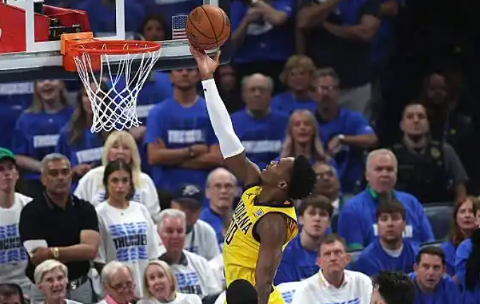 雷霆队在0-1落后1-2落后的情况下完成了逆转,雷霆率先拿到冠军点,步行者则命悬一线,加之印城第一核心泰雷斯-哈利伯顿遭遇了小腿拉伤,步行者要想连赢两场夺冠难于登天,步行者如今的目标是赢下主场的G6。