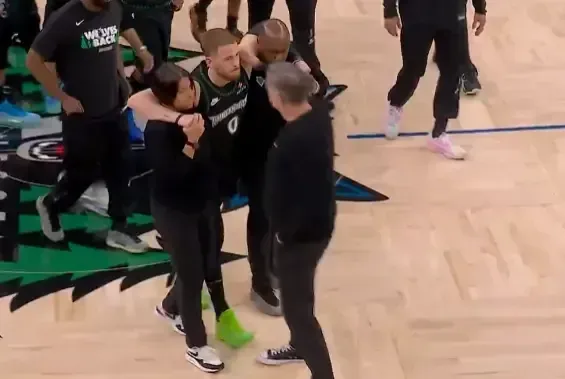 在季后赛首轮森林狼vs掘金G4的比赛开局阶段,森林狼后卫迪文琴佐在一次后脚向后发力蹬地的过程中不幸右腿受伤,仅登场1分19秒便伤退离场再没回归。据随后跟进报道:迪温琴佐被诊断出右跟腱断裂,赛季报销。