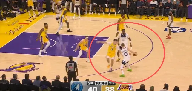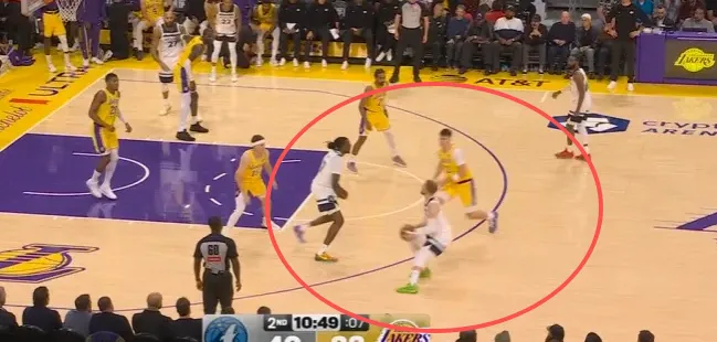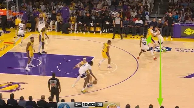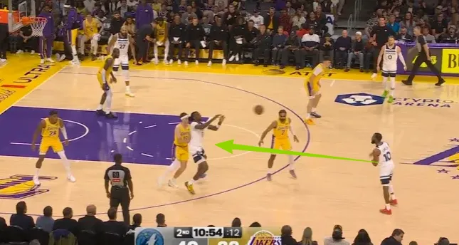 迪林汉姆拒绝掩护启动右路突破直杀篮下,行进间吸引肯威刷卡协防后立即找到三分线外上提至左翼的迪文,迪文接球的同时先是使用横撤步与防守人进一步拉开距离,